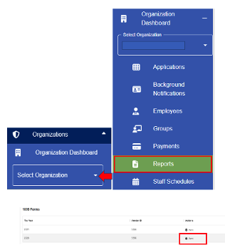• For programs, Form 1099 can be found in the Reports tab of your program’s Organization Dashboard. Shown below.